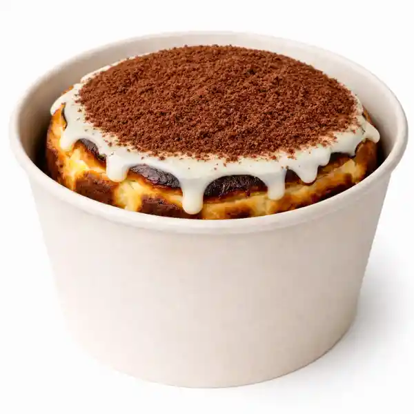 Mini torta vasca, exclusiva para los amantes del dulce. Viene con topping de leche condensada y Milo en polvo.