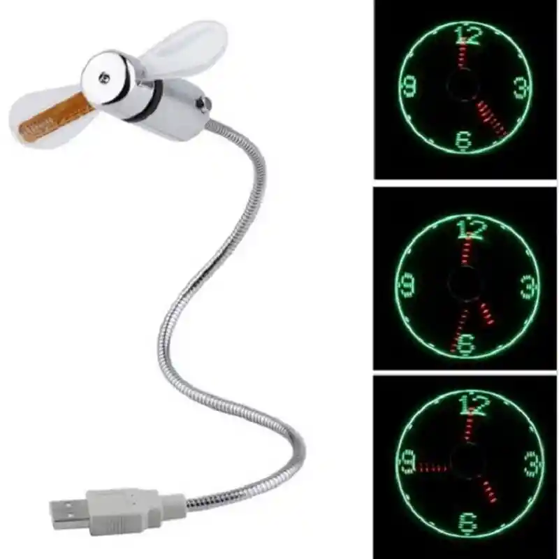 Este mini ventilador USB es perfecto para mantenerte fresca en lugares como tu oficina, casa y/o habitación. Lo puedes utilizar en interiores como en exteriores. Podrás ventilarte en cualquier situación y momento, por su cable flexible que puedes moverlo al lugar que lo necesites y te refrescarás ante cualquier situación acalorante. Cuenta con un cable de carga USB para que se pueda conectar fácilmente al computador mientras trabajas y estudias, no sufras más por esas tardes calurosas, también puedes estar mirando la hora de una manera única y diferente, te mantendrá despierto todo el tiempo. CONFIGURACIÓN DEL RELOJ: Conecte a un ordenador portátil o PC, a continuación, pulsa el botón para encender el ventilador. Pulsa durante 3 segundos hasta que veas el indicador parpadear y luego para. Haz una pulsación larga para ajustar el tiempo y luego para la pulsación hasta que llegue a la hora deseada. Luego haz una pulsación corta para ajustar y vuelves a parar la pulsación. (Se detendrá el parpadeo unos 6 o 10 segundos después). Así la configuración del tiempo está lista. CARACTERÍSTICAS: LED parpadeante Forma única y flexible Adecuada para portátil, ordenador de mesa. Hoja de espuma suave Alimentado por puerto USB Mini-forma para facilitar el transporte Diseño silencioso que no molesta para trabajar Hace que te sientas más cómodo en el trabajo ESPECIFICACIONES: Material: Aleación de metal Longitud: 40 cm (aprox.) ancho 9 cm. Color: Plata Peso: 58,8 gr. INCLUYE: 1 Mini Ventilador USB Flexible con Reloj Análogo de Luz Led. GARANTÍA: 3 meses (por defectos de fábrica o funcionamiento).
