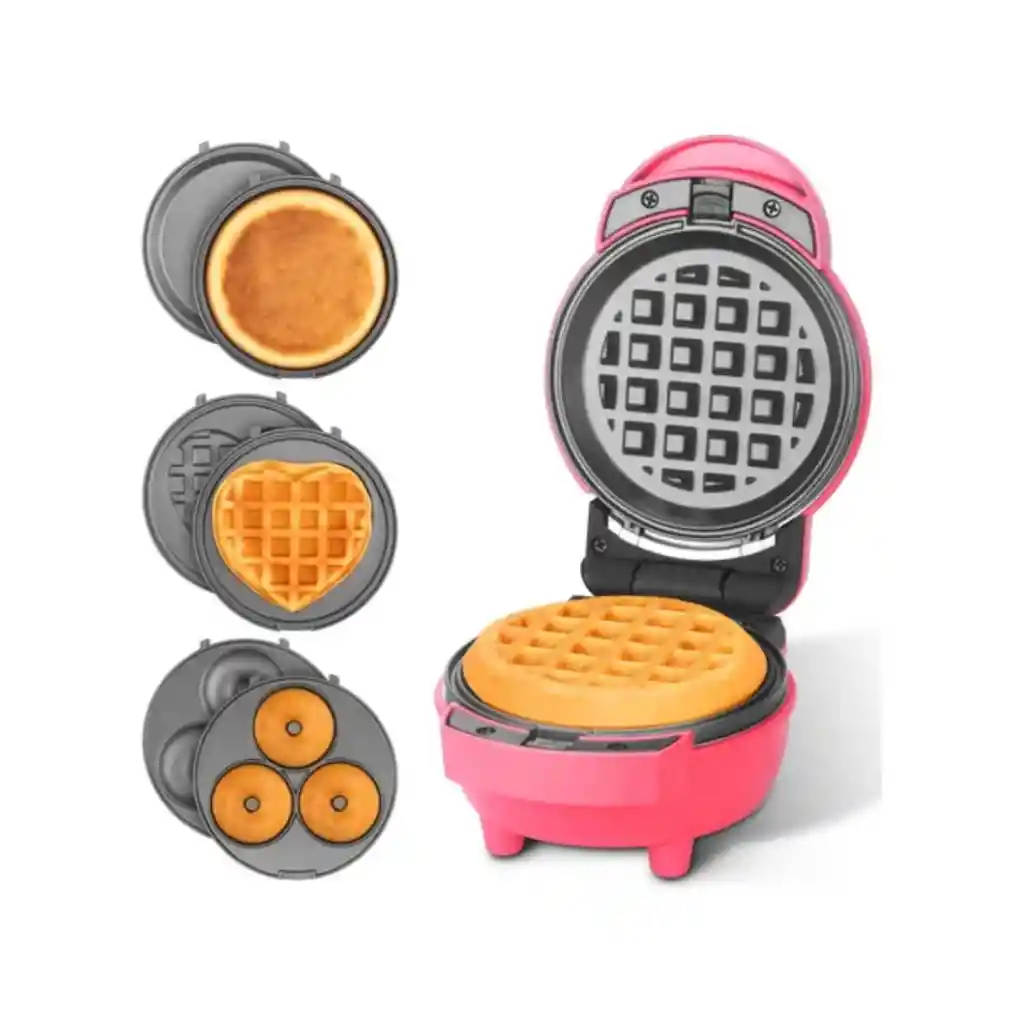 Baker's Friend Mini waflera 4 en 1 con platos extraíbles, un juego de mini máquina para hacer panqueques, mini máquina para hacer gofres en forma de corazón y pequeña waflera, tamaño compacto, receta • MÁS ALLÁ DE WAFFLES: ¡Crea mini gofres en forma redondeada o de corazón, así como paninis, papas fritas e incluso pizzas de galletas! Cuando use una masa húmeda, creará porciones individuales de sus golosinas y bocadillos en forma de gofre. Perfecto para niños o para cuando tienes prisa • Más allá de panqueques y donas: puedes crear porciones individuales de huevos, galletas, panqueques, queso a la parrilla, arepas y mini donas sin necesidad de múltiples utensilios de cocina • Compacto y ligero: con un peso de más de 1 libra, este producto es un artículo esencial para un primer apartamento, una cocina más pequeña, dormitorios universitarios o cuando viajas en una caravana/caravana. • RÁPIDO Y CONVENIENTE: Simplemente conéctelo a una fuente de alimentación y comience a usarlo; alcanza la temperatura deseada en solo unos minutos. Cada vez, los resultados consistentes se logran debido a las dos superficies antiadherentes que cocinan uniformemente los alimentos. Las placas de cocción se pueden quitar fácilmente y son adecuadas para limpiar en un lavavajillas. • Regalo ideal: una excelente opción para bodas o inauguraciones de casas, este artículo compacto ocupa un área mínima de encimera. Su diseño elegante y de moda, junto con una variedad de tonos de moda, complementa sin esfuerzo cualquier estilo de cocina.