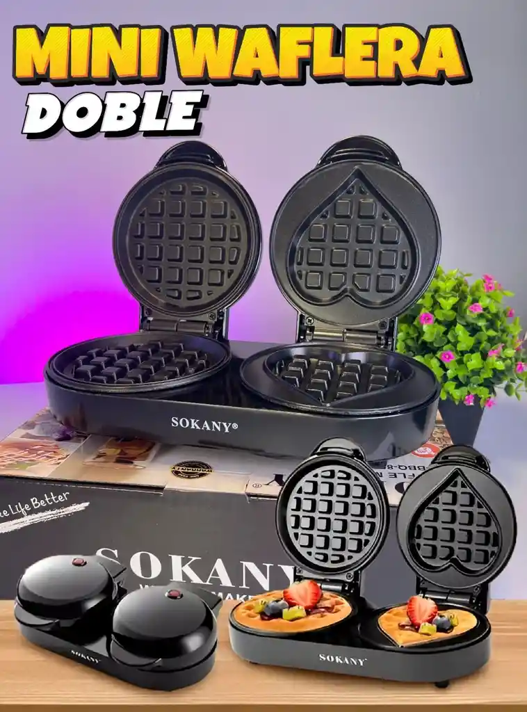 Prepara tus mas deliciosos Wafles de una forma práctica y sencilla con esta Waflera de dos porciones. Fácil de usar y de limpiar.Características:-Voltaje nominal: 110-220V.-Potencia nominal: 750W.