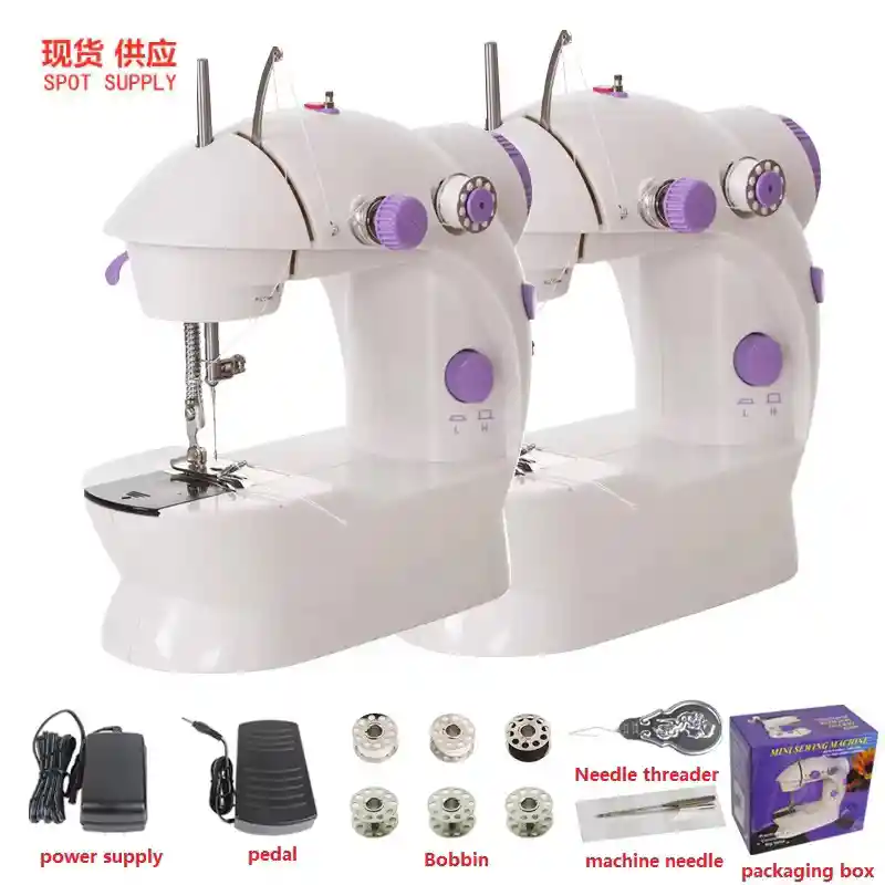Minimáquina DE COSER eléctrica de mano, máquina de coser de mano, ajuste de velocidad con luz. Este es un aparato para pequeños proyectos de costura. Esta equipada con hilos dobles, doble velocidad y diseño ligero. Paquete Incluye: 1 Mini Costura de la máquina, 1 pedal del pie, 1 Aguja Dispositivo -enhebrado, 1 Enhebrado Aguja , 2 Bobina con Hilo , 2 bobina sin Hilo , 1 Adaptador. Esta pequeña maquina ofrece puntada de hilo doble costura, limpio y recto. Cuerda automática del hilo de la bobina y el hilo superior, muy fácil de reemplazar. La velocidad puede ser conmutable: baja o alta, lo que es muy conveniente para enhebrar la aguja, viene con un pedal, puede elegir el interruptor de mano o el pedal de pie para controlarla, es ligera, compacta y portátil, puede ahorrar energía, espacio y tiempo, puede ser alimentado por adaptador de corriente o con pilas (no incluidas), es ideal para artesanos, aficionados al bricolaje en casa o para realizar todo tipo de costuras pequeñas y reparaciones sencillas.