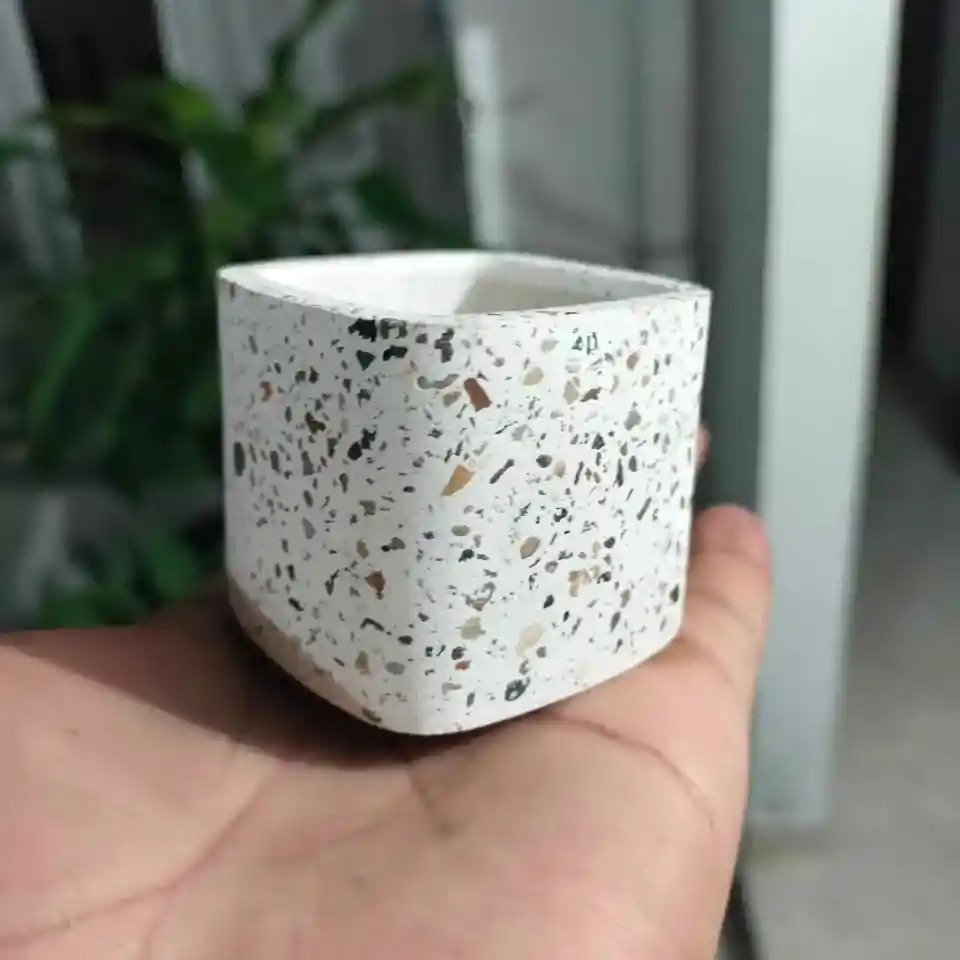 Minimateras En cemento Blanco y granito cuadrada Altura: 4.08 cm Largo: 5 cm Ancho: 5.05 cm