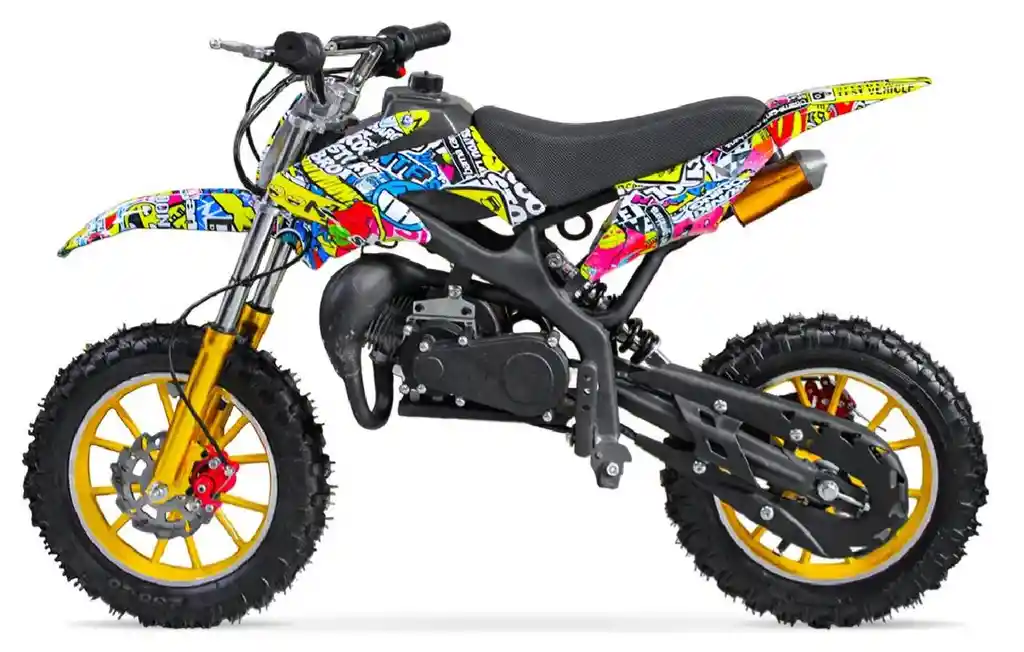 ¡Déjale la diversión a otro nivel! La Mini Motocross 50cc New Trek está diseñada para niños, adolescentes y principiantes que quieren vivir la adrenalina del motocross con seguridad, potencia y estilo. Su motor de 50cc a gasolina, su diseño deportivo lleno de gráficos estilo stickerbomb y su manejo suave la convierten en la mini moto perfecta para iniciarse en el mundo off-road. Esta motocicleta combina velocidad, control y resistencia, ideal para pistas, terrenos irregulares, fincas, senderos y diversión al aire libre. Si buscas una moto para niños resistente, rápida y segura: ¡esta es la mejor opción del mercado! BENEFICIOS DESTACADOS 1.Motor 50CC: potencia real y emocionante Ideal para quienes empiezan en motocross, permite alcanzar velocidades de hasta 30 km/h con excelente respuesta. 2.Llantas Off Road rin 10 Fabricadas en aleación 7117 para máxima resistencia y agarre en cualquier terreno. 3.Perfecta para jóvenes pilotos Apta para niños desde 6 años en adelante y soporta hasta 60 kg, permitiendo uso prolongado sin perder estabilidad. 4.Automática: solo acelerar y disfrutar Sin cambios complicados. Facilita un aprendizaje seguro, rápido y divertido. 5.Doble amortiguación Mayor estabilidad y absorción de impactos. Ideal para terrenos difíciles. 6 Diseño deportivo profesional Gráficos tipo motocross de alto impacto visual. La moto se roba todas las miradas. 7 Estructura reforzada y duradera Chasis de acero, frenos eficientes y componentes diseñados para resistir uso intensivo.