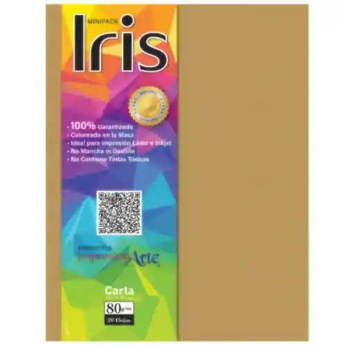 excelente opción para quienes buscan color, calidad y versatilidad en sus proyectos. Contiene 20 hojas tamaño carta con un grosor de 80 gramos, ideales para trabajos escolares, manualidades, decoración o uso en la oficina. Su superficie lisa y colores firmes no manchan ni se destiñen, lo que asegura resultados limpios y duraderos. ¿Para qué sirve? Este papel es perfecto para origami (figuras de papel), manualidades, dibujos, tarjetas, proyectos escolares, volantes publicitarios, menús, portadas, invitaciones y más. También se adapta muy bien a trabajos de oficina o de diseño donde se necesite un papel colorido y resistente. Características principales: Gramaje: 80 g/m² (equivale a un papel un poco más grueso que el de impresora común) Tamaño: Carta (21.5 x 28 cm aprox.) No manchan ni se destiñen Compatible con impresoras láser y de tinta (inkjet) Se puede imprimir por varios métodos como offset (impresión comercial), serigrafía (impresión sobre tela o cartón) y rotograbado (impresión a gran escala) Corte limpio y parejo, fácil de manipular y recortar Se puede laminar fácilmente para proteger o dar brillo a los trabajos El Minipack de Papel Iris Tamaño Carta es ideal para dar un toque creativo y profesional a cualquier proyecto, combinando resistencia, color y una excelente calidad de impresión