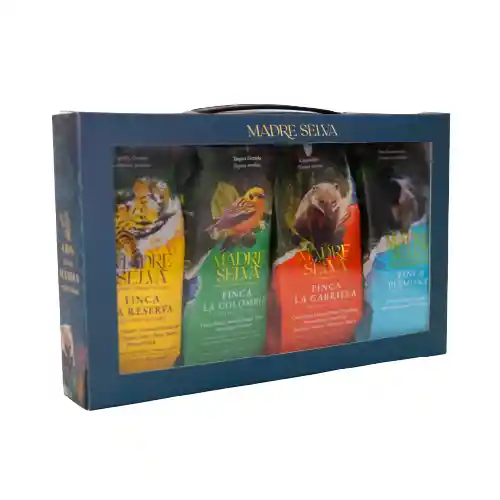 Disfruta de una experiencia única con esta caja que contiene los cuatro orígenes tradicionales de nuestras fincas molidos en molienda media: Finca La Gabriela 70 g: Notas de chocolate oscuro, frutos rojos, manzana, durazno y un toque de vino, con un cuerpo medio. Fermentado por 96 horas y secado al sol entre 1350-1600 m.s.n.m.. Finca Piamonte 70 g: Sabores de caña de azúcar, almendra tostada, con una acidez cítrica y afrutada. Fermentado por 72 horas y secado a 1.750 m.s.n.m.. Finca La Colombia 70 g:Notas de panela, frutal, cítrico y nuez, con un cuerpo cremoso en boca. Cultivado a 1.800 m.s.n.m. y lavado después de 36 horas de fermentación en almendra húmeda. Finca La Reserva 70 g:: Un perfil floral con notas de panela, durazno, caramelo y una acidez brillante. Fermentado durante 12 horas y secado en máquina y terrazas entre 1.800-2.000 m.s.n.m.. 📦 Contenido del producto: Se envía 1 caja con 4 bolsas de 70 g cada una (280 g en total). Nota: El producto cuenta con una caja adicional de embalaje.