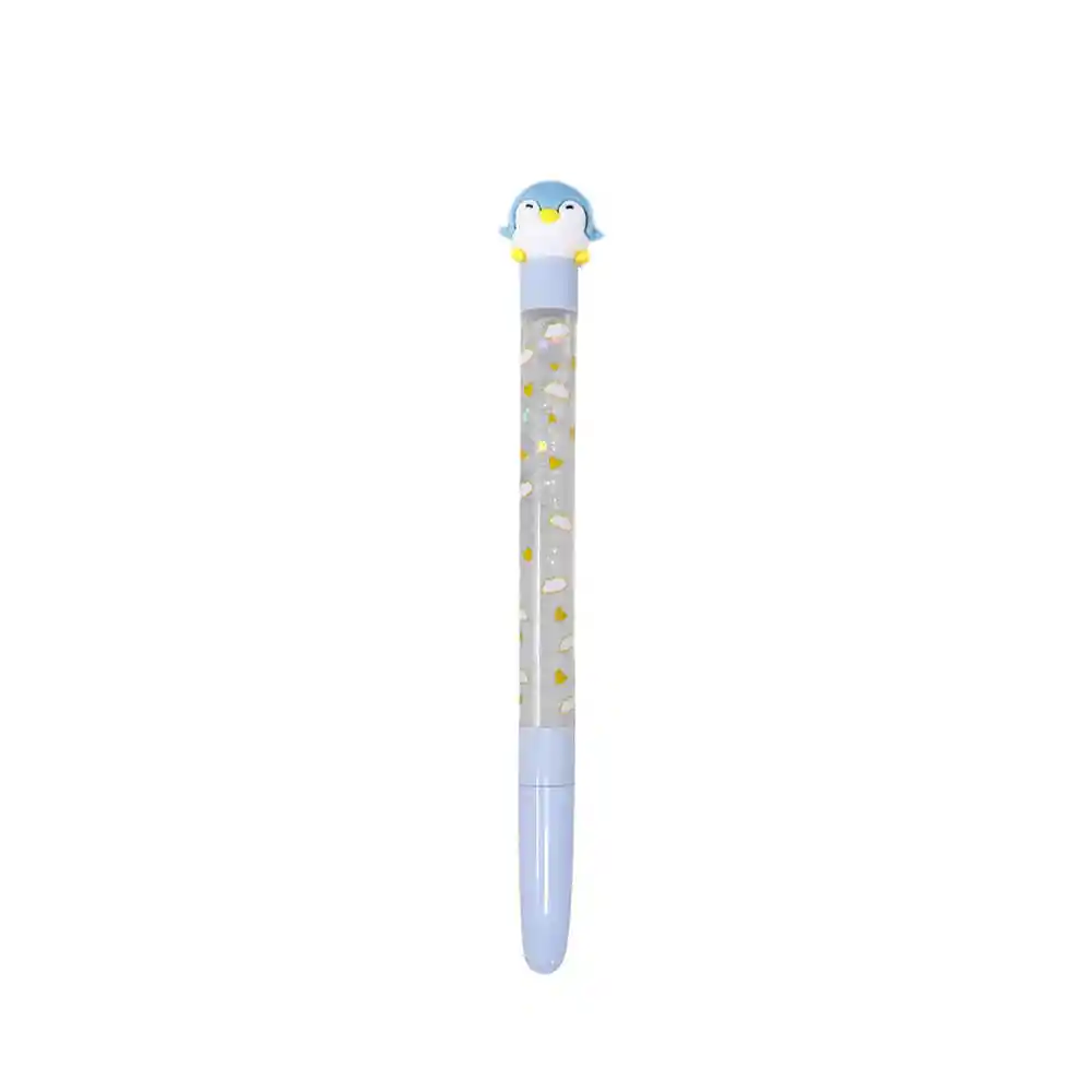 Adquiere Esta Linda Pluma Que Miniso Tiene Para ti. Barril Con Brillantinas y Detalle Decorativo de Pingüino. Tinta Azul. Punta de 0.5 mm. te Brinda Una Experiencia de Escritura Agradable y un Diseño Adorable.