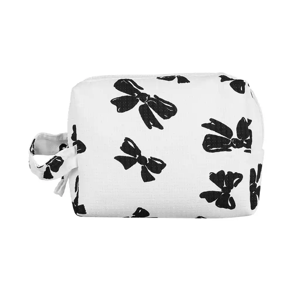 ¡Miniso Tiene Para ti Esta Linda Cosmetiquera! Confeccionada en Poliéster de Alta Resistencia Con Forro Interior. Tamaño 18 x 6 x 13 cm. Te Otorga un Lindo Diseño Con Detalle de Moños Estampados a Contraste Asa en Costado Compartimento de Cierre y Forro Interior. ¡Será un Elemento Imprescindible en tu Bolso Gracias a su Lindo Diseño Practicidad y Tamaño!.