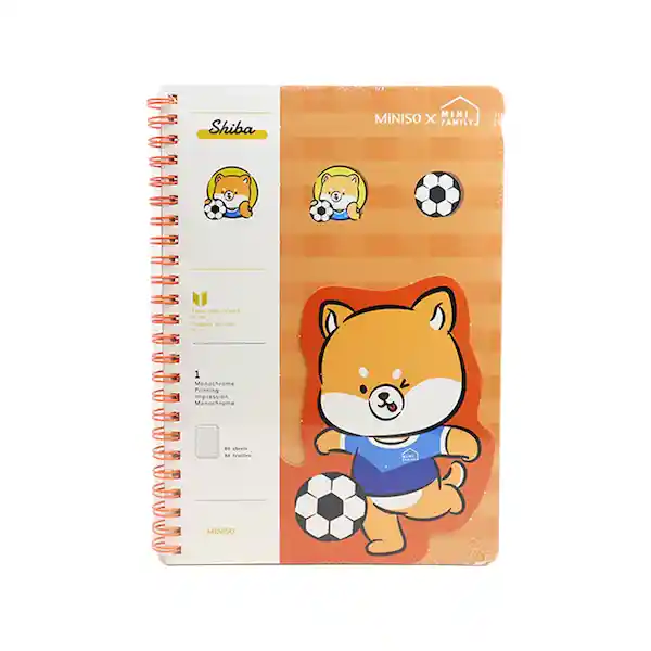 Mini Family Libreta Con Espiral en Color Naranja de la Colección ''Mini Family''. Multi Diseño de Shiba Inu Uno de Las Razas Más Pequeñas de Perros en Japón. Tamaño 14.5 x 20.8 cm. Contiene 80 Hojas a Rayas. Una Libreta Que te Otorga Una Experiencia Agradable de Escritura.