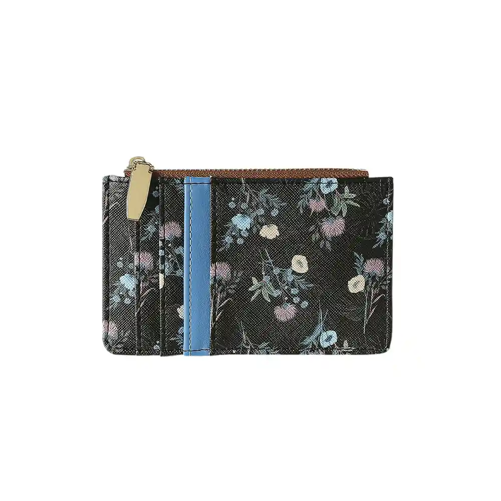Miniso Tiene Para ti Este Lindo Tarjetero en Color Negro. Diseño Floral Estampado a Contraste. Ranuras Para Tarjetas y Detalle de Monedero en Costado. Tamaño 13 x 8 cm. Porta Tus Tarjetas de Manera Cómoda y Practica.