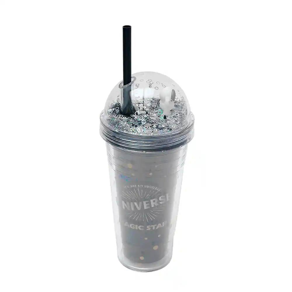 Vaso Con Pitillo De Dos Capas, Plastico Star Series, 420 Ml, Negro, Capacidad de 420 ml. | No debe usarse en microondas. | Incluye popote para beber directamente. | Ideal para regalo. | Varios modelos disponibles.