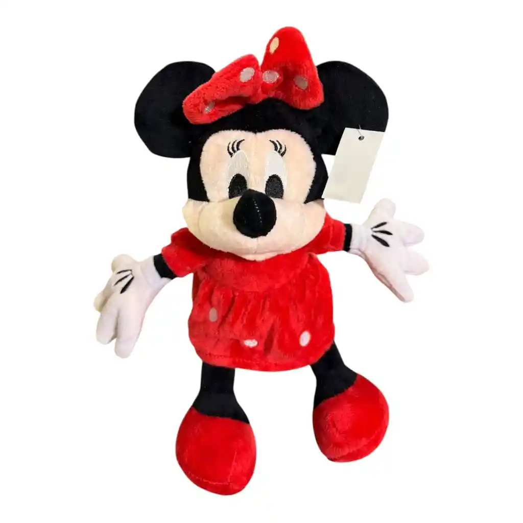 Lleva toda la magia de Disney a casa con esta encantadora Minnie Mouse de peluche de 30 centímetros que destaca por su icónico vestido rojo con puntos blancos y su lazo artesanal a juego que cautivará a todos por su suavidad. Este peluche es el elemento de decoración ideal para una fiesta temática o para incluir como el regalo principal en un kit de cumpleaños infantil ya que su diseño clásico y tierno lo hacen perfecto para una celebración inolvidable. Solo viene 1 unidad por pedido y es importante mencionar que los detalles específicos de los bordados o el tono del color rojo podrían presentar ligeras variaciones dependiendo de la disponibilidad de la tienda al momento del envío para asegurarte siempre una pieza de alta calidad.