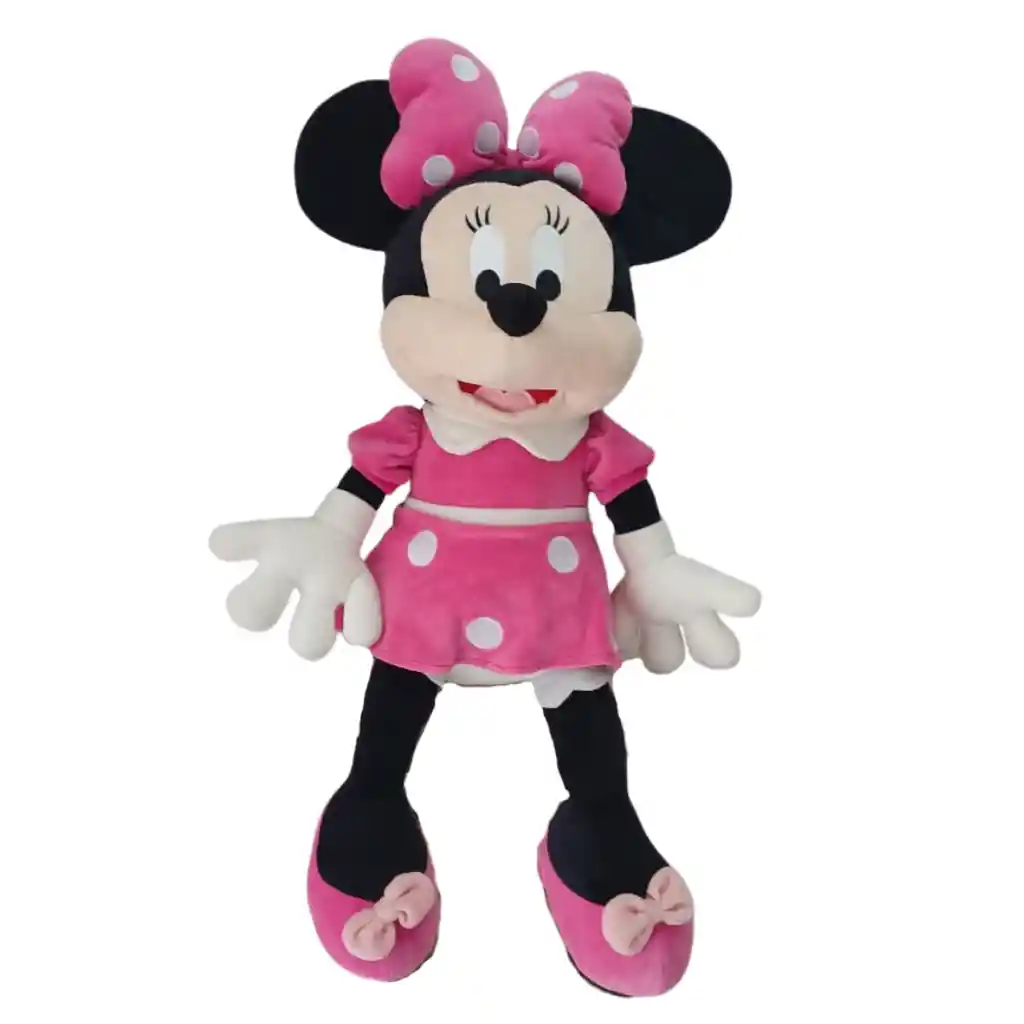 Hermoso peluche de Minnie Mouse con vestido rosado, mide aproximadamente 55cm. Perfecto para toda ocasión.