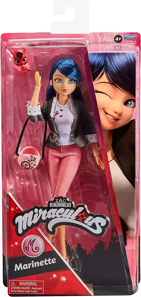 Moda elegante: Marinette viene vestida con sus exclusivos pantalones capri rosados, blazer gris con detalles de lunares, camiseta con su estampado de flor de cerezo y adorables zapatos planos rosados. Accesorios extraíbles: estos incluyen sus adorables zapatos rosados, un bolso cruzado, el tamaño adecuado para Tikki, y aretes extraíbles. "TIKKI, ¡puntos encendidos! El juego incluye el mágico Kwami de Marinette, Tikki. Posicionado para la acción: la muñeca Marinette tiene 15 puntos de articulación, incluyendo rodillas y codos de doble articulación, para una postura realista. Colecciónalos todos: busca todas las muñecas, accesorios y juegos de Miraculous Ladybug, basados en la popular serie de televisión animada.