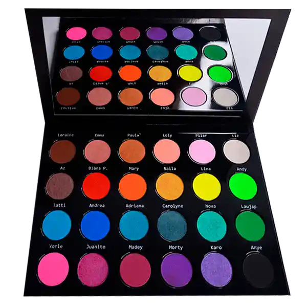 La Paleta Mirely Lovers Consta de 24 Tonos, Entre Ellos Tres Neones, Que Harán Que Tus Maquillajes Sean Increíbles. Consta de un Gran Espejo Con Dimensiones de 22,5 de Ancho y 14,5 de Largo.