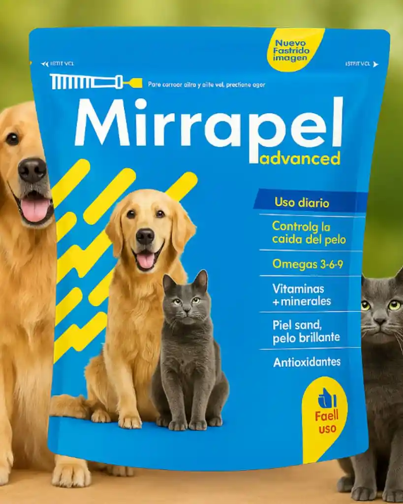 Mirrapel Advanced 300 grs – ¡La salud y el brillo que tu mascota merece! ¡Bienvenidos a Vetmak! Proporciona a tus amigos peludos el cuidado que necesitan con Mirrapel Advanced para Mascotas, el suplemento nutricional perfecto para mantener la salud y el esplendor de su piel y pelaje. Este innovador producto es ideal para perros y gatos de todas las razas y edades, asegurando que luzcan un pelaje radiante y saludable.