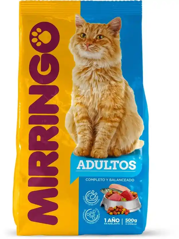 Mirringo Gatos Adultos Es un alimento completo que satisface todos los requerimientos nutricionales. Apoya el crecimiento, desarrollo, mantenimiento y lactancia. Formulado para gatos de todas las razas.