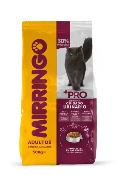 Mirringo + Pro contribuye al cuidado urinario de nuestros felinos, gracias al balance de minerales que ayudan al buen funcionamiento de las vías urinarias y su salud renal, además favorece la salud de sus dientes, visión y acción antioxidante.