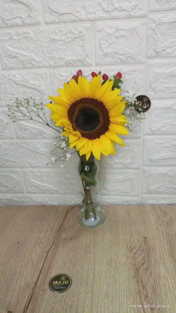 MIS FLORES AMARILLAS EN GIRASOL Y BASE DE VIDRIO