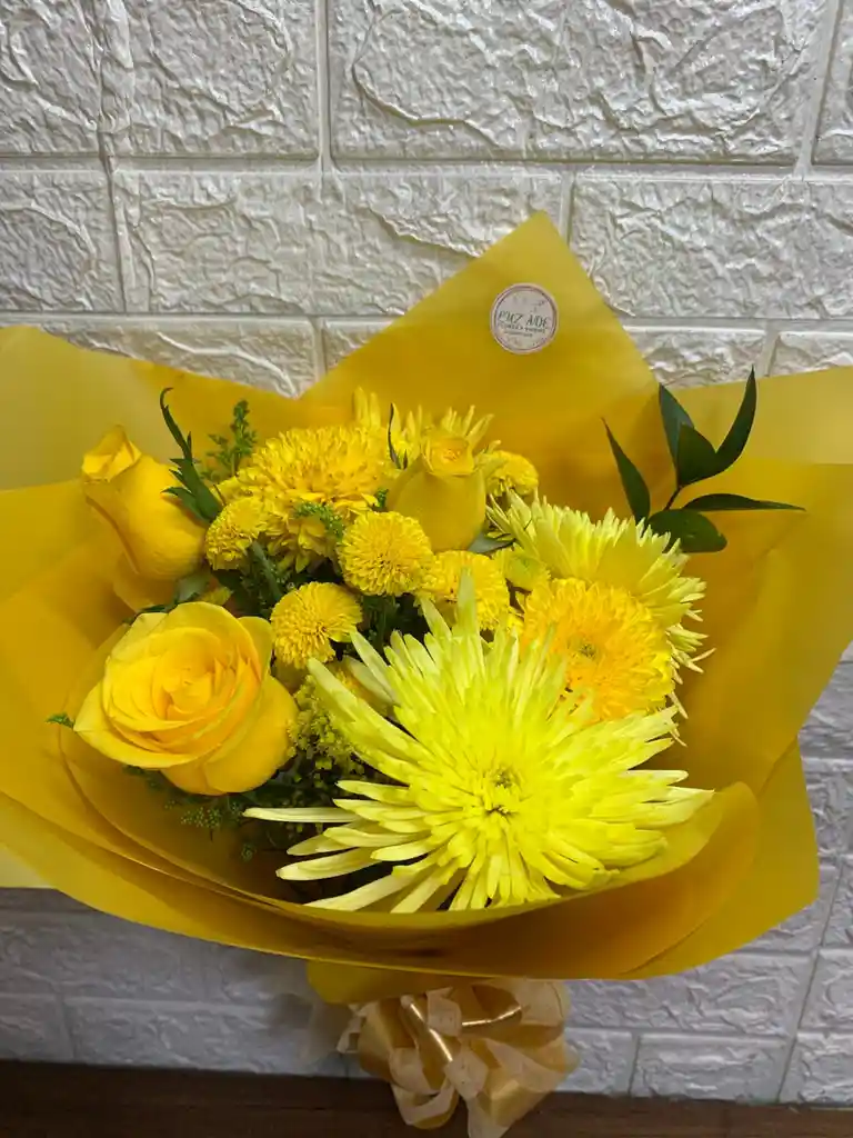 mis flores amarillas fulli con follaje y 3 hermosas rosas amarillas