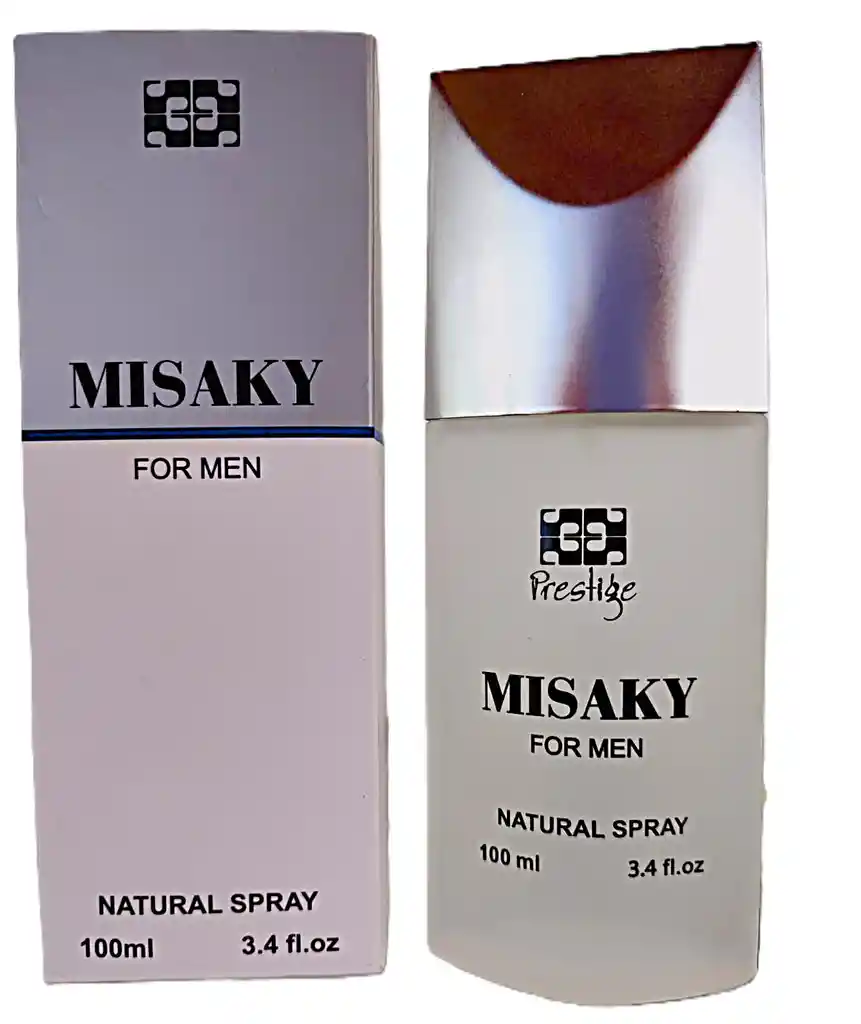 Perfume o loción corporal para hombres, comercializado como Mysaky for men. Se describe como una fragancia moderna con notas aromáticas como hoja de coco, madera de oud y almizcle blanco, o notas cítricas y herbales, buscando generar una sensación de frescura . Presentación de 100ml. Perfume Colombiano.