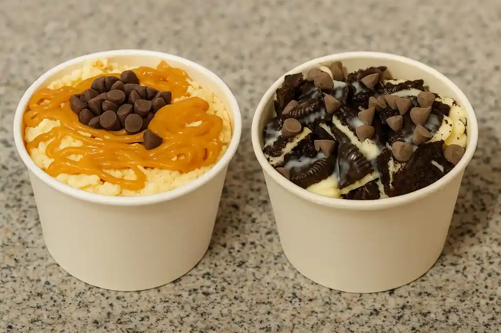 Dos postres irresistibles en un solo combo: arequipe con chispas de chocolate + oreo cremosa con toque crunchy. presentación de 8 onzas.