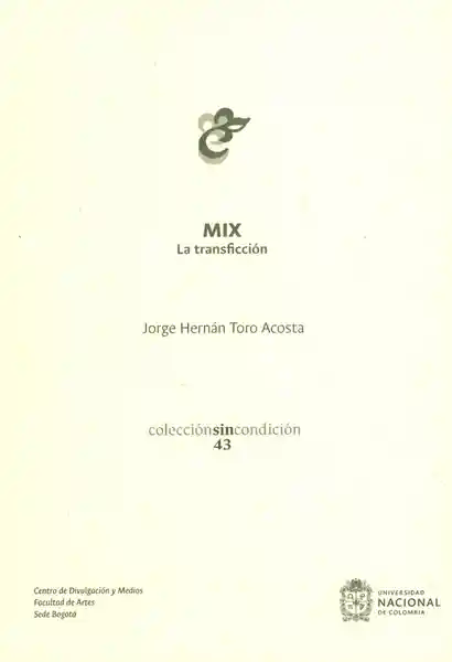 Mix es Una Metaficción Crítica Escrita en Planos Fractales Convexos Convergentes ya la Vez Divergentes. Jorge Hernán Toro es Profesor de Teoría Estética de la Escuela de Artes Plásticas de la Universidad Nacional de Colombia. Ha Publicado Ensayos Sobre Conrad Sartre Schelling y Wittgenstein. Además ha Sido el Traductor de Dos Obras de Schelling Lecciones Privadas de Stuttgart (2011) y Filosofía y Religión (2013) y de un Texto Sobre la Estética de Wittgenstein Wittgenstein: Estética Con Método (2008). Su Libro de Cuentos Las Galerías Decrecientes&Raquo (2004) Inédito ha Sido Considerado un Hito en la Historia Del Cuento Colombiano. ISBN: 9789587836837