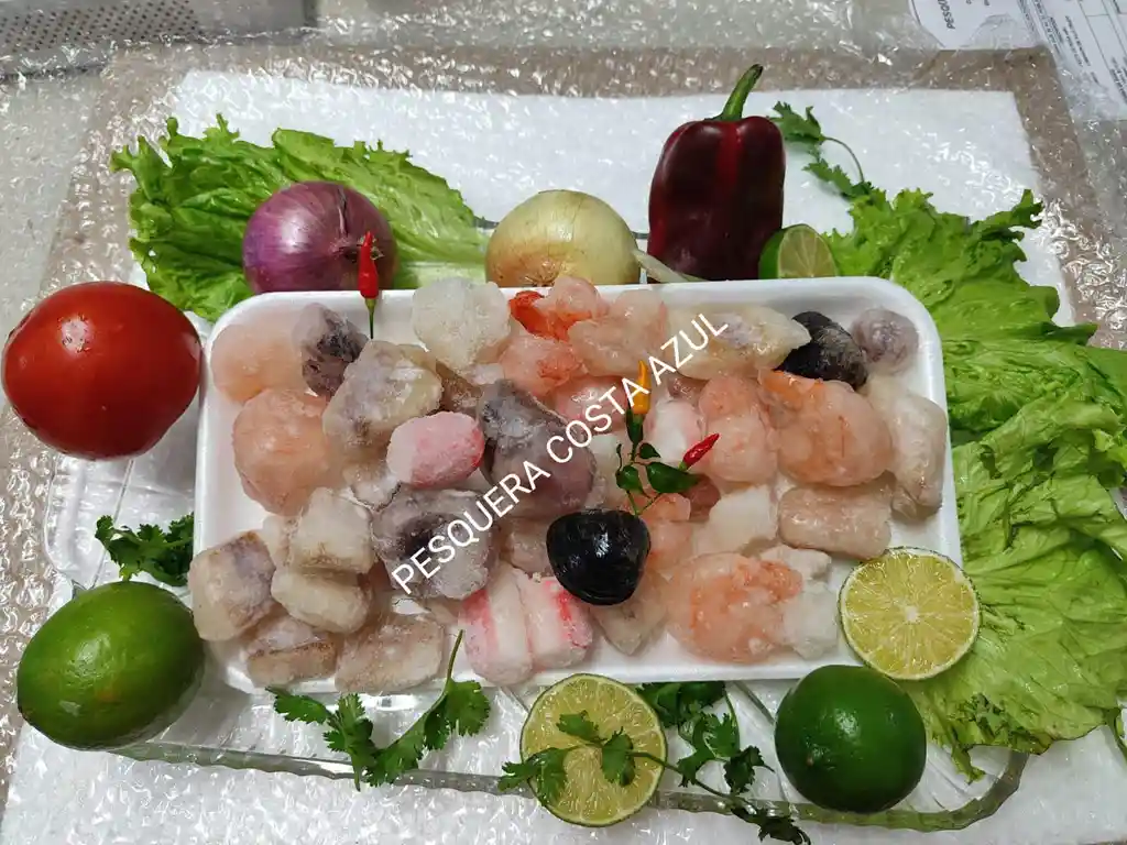 Camarón Precocido, Anillos De Calamar, Palmito Surimi, tentáculos de Calamar, Calamar blanco, almeja en concha