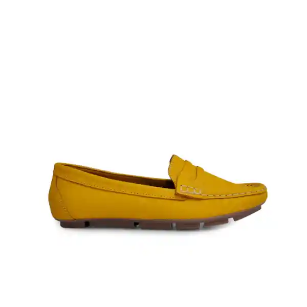Mocasín Plano en Cuero Con Tacón Bajo de 1 cm, Suela en Sintético y Forro Interno en Sintético.