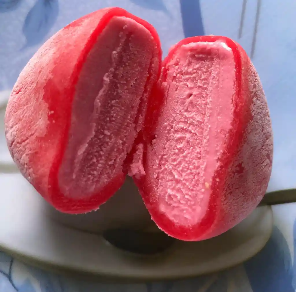 MOCHI, ES UN DULCE JAPONES EN ESTE CASO UNA BOLITA DE HELADO ARTESANAL CUBIERTA DE UNA MASITA DE ARROZ GLUTINOSO SABORIZADO PERO BAJO EN AZUCAR . ESTE PRODUCTO ES LIBRE DE GLUTEN ( HARINA A BASE DE TRIGO ) ESTA ADICIONADO CON CHANTILLY Y QUIPITOS.