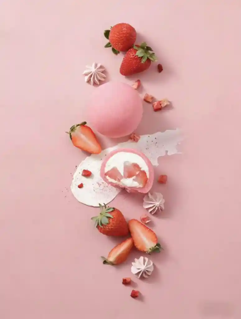 Este es un postre hecho de leche, crema, fruta fresca, fideos de arroz y azúcar. La superficie está decorada con crema, frutas y flores (las personas con alergias alimentarias anteriores no deben comprarlas. Las flores son solo decoraciones y no deben comerse). La fruta de la imagen se ajustará de acuerdo con el agua dulce del día.