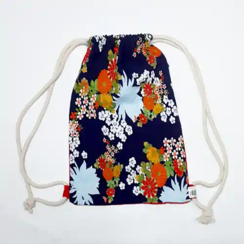 Mochila azul de flores, material tela, medidas 29 cm x 35 cm