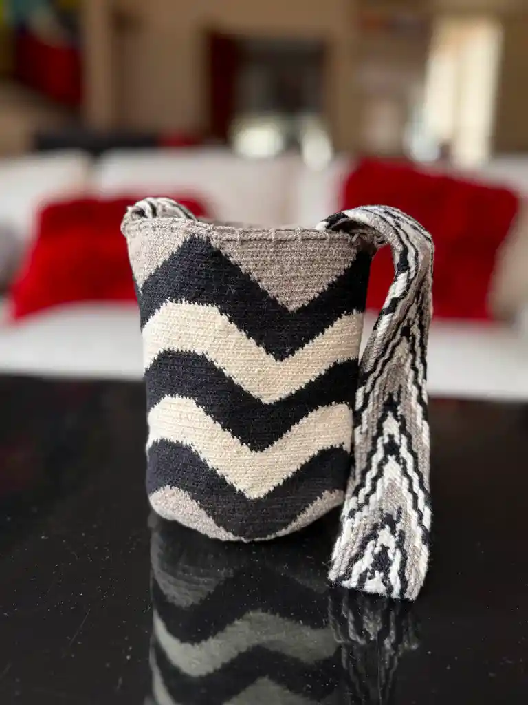 Mochila Kankuama, elaborada en lana por artesanos de atanquez - cesar. Alto: 22cm Ancho:23cm Gaza: 103cm