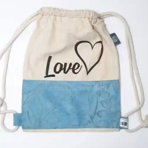 Mochila love, material tela, medidas 29 cm x 35 cm