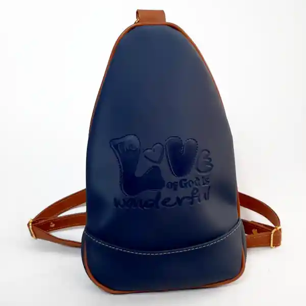 Morral tipo mochila love of God is wonderful color azul, medidas 21 cm de ancho x 33 de alto y 9 cm de profundidad