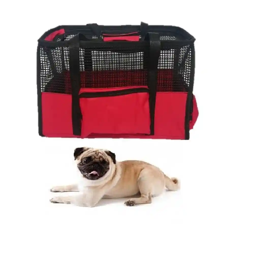»»»»»» BIENVENIDO»»««««« Mochila Maletín En Malla Pequeño Para Perros Y Gatos Estos maletines cargadores permiten que tu mascota te acompañe a donde vayas ya sea para viajes largos o cortos sin importar el destino. Los maletines en malla proporcionan a tu mascota la mayor comodidad para el trascurso del viaje ya que por el diseño en malla permite que se sientan en contacto con el exterior y del mismo modo proporciona gran ventilación evitando que se sofoquen. El maletín cuenta con 3 bolsillos. Uno frontal y 2 laterales lo cual es ideal para guardar los accesorios, además de ello el fondo es rígido por el cual permite que no se deforme con el peso de la mascota al momento de ser trasportado. DIMENSIONES ANCHO: 25 CM ALTO: 27 CM LARGO: 42 CM color: rojo + Cuenta con un soporte en la base para proporcionar rigidez al momento de transportar a tu mascota + Cuanta con 1 puertas de ingreso y salida, con Cremalleras + Excelente Material, duradero y fácil de limpiar + Tiene soporte en la parte interna para darle rigidez y forma a tu maletín + Excelente Ventilación + Cuenta con un bolsillo para transportar, alimentos, y oros accesorios tiene manijas para cargar. + Apta para llevar en cabina de Avión + Superficie Superior Flexible + Se puede desarmar para ocupar menos espacio cuando no se esté usando + Soporta un peso hasta 10 kilos. `+ Transportador de mascotas aprobado por las aerolíneas: los transportadores para mascotas están aprobados para su uso en la mayoría de las compañías aéreas y ofrecen más comodidad para un largo viaje con tu mascota