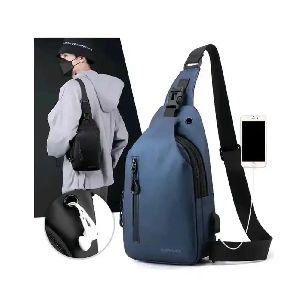 Mochila Pechera Impermeable con Puerto USB Unisex ¡Lleva lo esencial con estilo y comodidad! Esta mochila pechera tipo mensajero es ideal para el día a día, diseñada para quienes buscan practicidad sin dejar de lado la moda. Su diseño moderno y compacto la hace perfecta para viajes cortos, paseos en bicicleta o moto, o simplemente para moverte con libertad sin cargar tanto equipaje. Fabricada en nylon impermeable, protege tus pertenencias de la lluvia y el polvo. Cuenta con 4 compartimientos con cierre, ofreciendo espacio seguro para celular, cartera, llaves, cargador y más. Además, incluye puerto USB externo y salida para audífonos, lo que te permite mantener tus dispositivos cargados y tu música favorita a la mano mientras te desplazas. Características destacadas: Material: Nylon impermeable Correa ajustable para mayor comodidad 4 compartimientos con cierre Puerto USB + cable de carga incluido Salida para audífonos Medidas: 30 cm (alto) x 17 cm (ancho) x 7 cm (profundidad) Nota: El tono del color puede variar ligeramente según la iluminación.