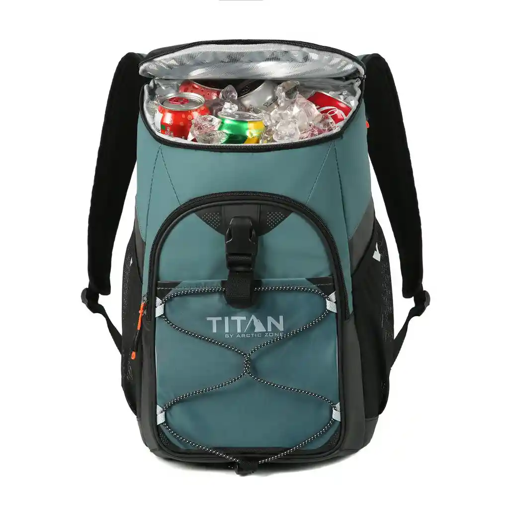 La mochila térmica para enfriar bebidas, color verde Azulado está pensada para acompañar planes al aire libre, jornadas de playa, viajes por carretera y días de picnic con una solución práctica de transporte y conservación en frío. Su formato tipo mochila libera las manos y mejora la movilidad. En el compartimento principal se puede organizar una carga equivalente a hasta 24 latas, ideal para reuniones, salidas deportivas o para llevar bebidas y snacks de forma ordenada. El interior incorpora forro Ultra Safe a prueba de fugas con protección antimicrobiana, útil para minimizar derrames y mantener el área de almacenamiento más controlada durante el uso. Información del producto: Mochila térmica para bebidas con capacidad para hasta 24 latas | Sistema de aislamiento Deep Freeze Performance con barrera radiante Therma-Flect que ayuda a mantener el frío por más tiempo | Forro interior Ultra Safe a prueba de fugas con protección antimicrobiana | Compartimento principal con cierre | Bolsillos exteriores para accesorios | Espalda acolchada con paneles de malla transpirable | Correas acolchadas y ajustables tipo mochila | Exterior repelente al agua y a las manchas fácil de limpiar con paño húmedo | País de origen China.