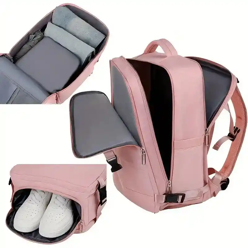 Tu Compañera Ideal para Todas tus Aventuras La Mochila Viajera es el accesorio perfecto para aquellos que buscan comodidad, funcionalidad y estilo en sus viajes. Con un diseño ergonómico y amplio espacio de almacenamiento, esta mochila está diseñada para adaptarse a todas tus necesidades mientras exploras el mundo. Características: ✅Medidas: 46 cm de alto y 30 cm de ancho ✅Material Duradero: Fabricada con materiales de alta calidad, resistentes al agua y al desgaste, garantizando que tus pertenencias estén seguras y secas. ✅Incluye varios bolsillos y compartimentos internos para una organización eficiente de tus objetos personales, como laptop, ropa, libros, y más. ✅Diseño Ergonómico: Correas acolchadas y ajustables que distribuyen el peso de manera uniforme. ✅Estilo Moderno: Diseño elegante y contemporáneo. ✅Cremalleras Seguras: Equipado con cremalleras robustas y de fácil deslizamiento. ✅Bolsillo Antirrobo: Compartimento oculto para guardar objetos de valor. ✅Multifuncional con compartimento para zapatos, bolsa de almacenamiento para gimnasio Ideal para: -Viajes de fin de semana -Escapadas urbanas -Actividades al aire libre -Uso diario para la escuela o el trabajo. ¡Haz de Cada Viaje una Experiencia Cómoda y Estilosa!