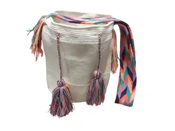 Mochila Wayuu Grande Unicolor Originales Artesanía Guajira Blanco