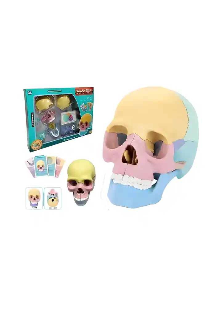 Explora la anatomía del cráneo humano con este modelo educativo 4D a escala 1:2, ideal para niños curiosos, estudiantes y amantes de la ciencia. Con 17 piezas desmontables, este kit didáctico permite armar y desarmar el cráneo mientras aprendes sobre huesos como el frontal, maxilar, mandíbula y más. Beneficios clave: - 🧩 Aprendizaje interactivo: fomenta la lógica, la coordinación y el pensamiento espacial. - 🎓 Contenido educativo: incluye guía de armado y tarjetas informativas con nombres y funciones de cada hueso. - 🎨 Diseño colorido y segmentado: facilita la identificación visual de cada parte. - 👶 Apto desde los 3 años: seguro, resistente y diseñado para manos pequeñas. - 🧠 Ideal para uso escolar, terapias o juego en casa. Perfecto para padres, docentes y terapeutas que buscan herramientas que combinan diversión y conocimiento. ¡Convierte el aprendizaje en una experiencia memorable!