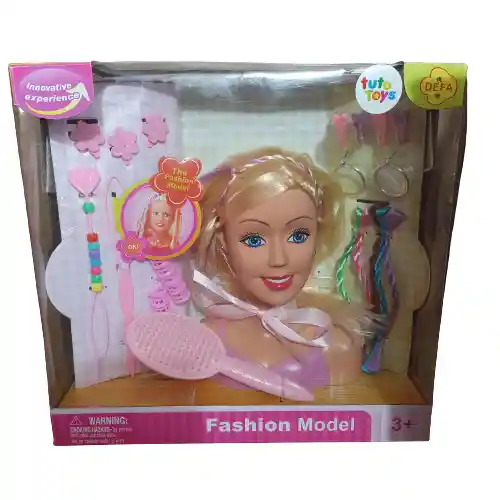 Somos Danny Toys, ofrecemos cabezote muñeca modelo para peinar. Medidas: 15cm x 18cm x 8cm. Contiene: *1 Cepillo. *2 Aretes. *2 Rulos. *3 Hebillas grandes. *4 Hebillas Pequeñas. *5 Extensiones de pelo.