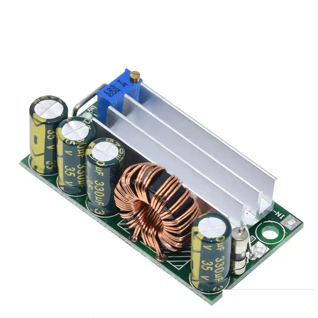 Voltaje de entrada: 4-30 V Voltaje de salida: 0.5-30 V Corriente de salida: 3A, 4A con ventilador de enfriamiento Potencia de salida: 30 W sin ventilador de refrigeracion, 60 W con ventilador de refrigeracion Ondulacion de salida: 30MV (voltaje de salida total) Eficiencia de conversion: Boost, 88% -91%; Dolar, 87% -90%. Proteccion contra cortocircuitos: si Frecuencia de trabajo: 180 kHz Tamaño: 48 * 23 * 21 mm caracteristicas: 1. se puede doblar y aumentar. No importa que tan grande sea el voltaje de entrada, el voltaje de salida se puede fijar en 12V. cuando el voltaje de entrada es de 12 V, el voltaje de salida puede reducirse a 5 V o aumentarse a 24 V. 2. Es mas eficiente, tiene mas potencia que el modulo tipo XL6009. 3. la ondulacion de voltaje de salida ultrabaja La ondulacion del voltaje de salida es de solo 20 mV cuando el voltaje de entrada es de 12 V, la corriente es de 3 A, especialmente para la placa de amplificador de audio / potencia, fuente de alimentacion de circuito analogico 4.con un cargador de telefono movil o con bateria, puede lograr una fuente de alimentacion de CC ajustable de 0.5 a 30 voltios. LA COMPRA INCLUYE: 1X MODULO ELEVADOR REDUCTOR AT30