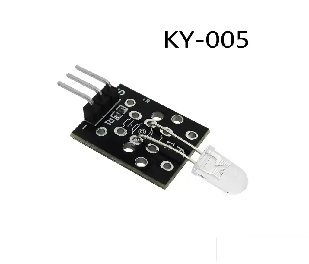 El modulo transmisor de infrarrojos KY-005 consta de solo un LED IR de 5 mm. Funciona junto con el modulo receptor IR KY-022. Compatible con plataformas electronicas populares como Arduino, Teensy, Raspberry Pi y ESP8266. Voltaje de funcionamiento 5V Corriente delantera 30 ~ 60 mA Consumo de energia 90mW Temperatura de funcionamiento -25 C a 80C [-13F a 176F] Dimensiones 18.5 mm x 15 mm [0.728 pulgadas x 0.591 pulgadas] El control de emisiones infrarrojas, tambien conocido como diodos emisores de infrarrojos, pertenece a la clase de diodos. Se puede convertir directamente en energia electrica cerca del infrarrojo. La luz (luz negra), y puede irradiarse desde el dispositivo emisor de luz, se usa principalmente en varios interruptores fotoelectricos y circuitos transmisores de control remoto. La estructura de control de la emision infrarroja, los principios y los diodos emisores de luz son es, pero se utilizan diferentes materiales semiconductores. Utilice el diodo emisor de infrarrojos (GaAs) de arseniuro de galio, el arsenico de aluminio y galio (GaAlAs) y otros materiales, el uso de un paquete de resina negra transparente o azul claro. Distancia de disparo, angulo de lanzamiento (15 grados, 30 grados, 45 grados, 60 grados, 90 grados, 120 grados, 180 grados), la longitud de onda de emision fisica de la luz. Los parametros fisicos anteriores deben comprender sus parametros de rendimiento electrico: el diametro de El mercado comun, 3 mm, 5 mm para el control de emisiones infrarrojas de baja potencia, 8 mm, 10 mm para el tubo de lanzamiento de potencia media y alta potencia. Tubos de transmision de baja potencia de voltaje directo: 1.1-1.5V, corriente de 20ma, la potencia del voltaje directo. 1.4-1.65V 50-100ma, tubos de lanzamiento de alta potencia para la tension de avance: 1.5-1.9V200-350ma. El control de emision de infrarrojos de potencia se puede aplicar a la iluminacion de vigilancia infrarroja. LA COMPRA INCLUYE: 1X EMISOR INFRARROJO KY-005