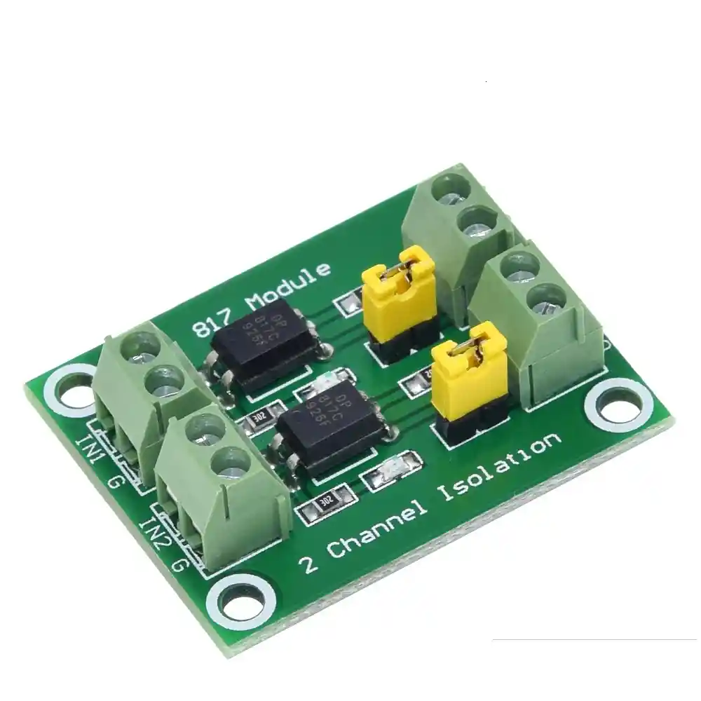 1. Voltaje de señal del puerto de conduccion: 3.6-24V 2. Puerto de salida Puerto de voltaje: 3.6-30V 3. La tapa del puente puede lograr que el puerto de salida sea de alto potencial o salida desplegable 4. Los 2 canales a bordo 817 son independientes: pueden lograr un control de voltaje diferente al mismo tiempo El puerto de entrada se comparte con GND; Los puertos de salida son independientes entre si. LA COMPRA INCLUYE: 1X MODULO OPTOACOPLADOR 2 CANALES PC817