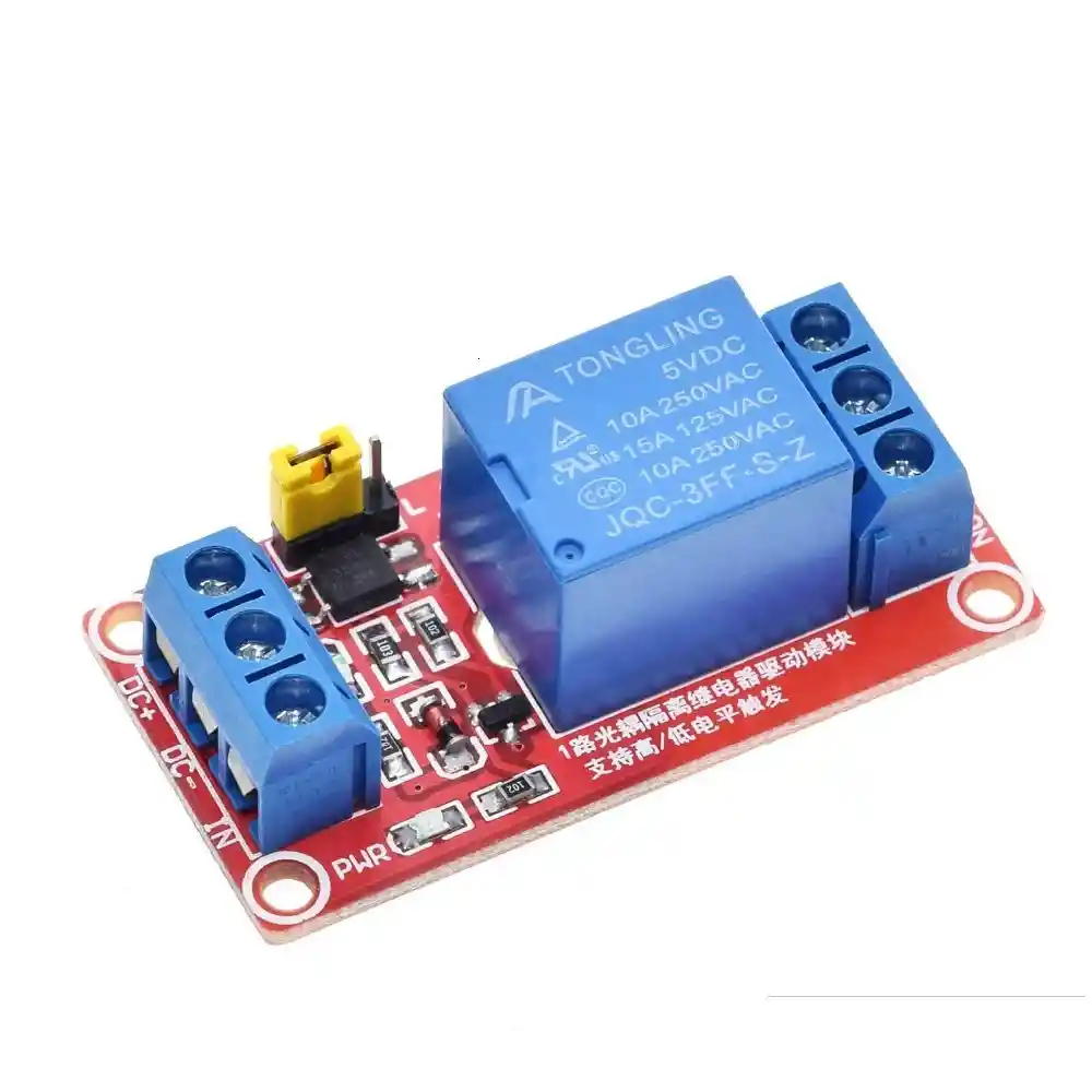 Modulo de rele de 1 canal, con aislamiento fotoelectrico. El modulo puede ser alto o bajo mediante un activador de ajuste de puente Con indicador de potencia y rele de accion. El modulo Tension de funcionamiento 5V El modulo utiliza rele de calidad genuina, interfaces normalmente abiertas Carga maxima: AC 250V / 10A, DC 30V / 10A Interfaz del modulo: DC +: fuente de alimentacion positiva (VCC) (5V) DC-: fuente de alimentacion negativa (GND) IN: el extremo de control, la corriente de conduccion debe ser superior a 4 mA COM: el control del bucle del cable de tierra LA COMPRA INCLUYE: 1X RELEVO OPTOACOPLADO 5V LOW/HIGHT LEVEL TRIGGER