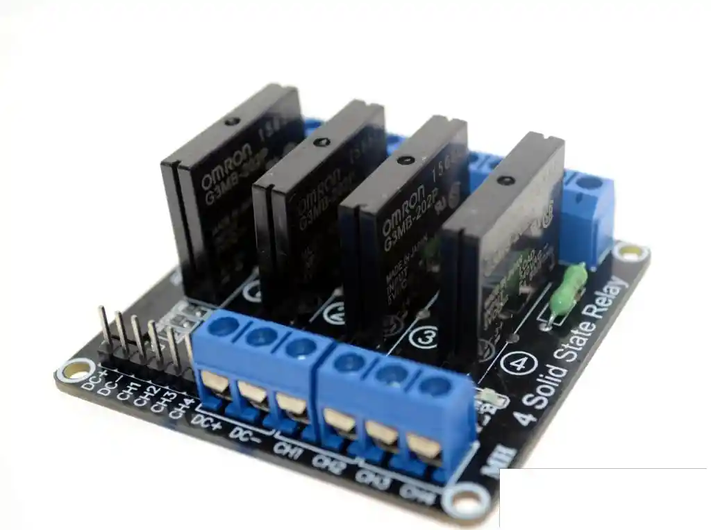 1, rele de estado solido OMRON 5V 240V 2A, salida con fusible de resistencia tipo 240V 2A. 2, tamaño: 57 * 55 * 25 (largo * ancho * alto) peso neto: 40 g 3, la fuente de alimentacion de entrada: 5V DC (160MA) 4, el voltaje de la señal de control de entrada: (0-2.5V el estado del rele de bajo nivel ON) (3.3-5V rele de alto nivel OFF ) 5, el terminal KF301 de 2.54 CM y el terminal azul estan conectados a la linea de control mas conveniente. Interfaz del modulo: Parte de entrada: DC +: conecte la fuente de alimentacion positiva (presione la fuente de alimentacion de voltaje de rele) DC-: el catodo de una fuente de alimentacion CH1: 1 modulo de rele señal de fin de disparo (disparo de alto nivel efectivo) CH2: final de activacion de señal del modulo de rele 2 (activacion de alto nivel efectiva) CH3: final de activacion de señal del modulo de rele 3 (activacion de alto nivel efectiva) CH4: final de activacion de señal del modulo de rele 4 (activacion de alto nivel efectiva) Alto nivel y bajo nivel de significado: El disparador de alto nivel se refiere al final del disparador de señal (IN) tenia un voltaje positivo y el polo negativo de la fuente de alimentacion generalmente esta entre, y el final del disparador de un disparador conectado con el polo positivo de una fuente de alimentacion, cuando el final del disparador tiene Un voltaje positivo o alcanzado el voltaje de disparo, el rele es atraido. El disparador de nivel bajo se refiere al voltaje de activacion de la señal entre el extremo y el electrodo negativo de la fuente de alimentacion es OV, o el voltaje del terminal de activacion es mas bajo que el voltaje positivo de la fuente de alimentacion, bajo para activar el rele, es generalmente el catodo de la fuente de alimentacion y el extremo de activacion de una conexion de modo de disparo, de modo que se atrae el rele. Parametros electricos: La version de voltaje de corriente estatica de la corriente de trabajo del voltaje de disparo, corriente de disparo 1 via 5V 0mA 13.8mA 3.3-5V 2mA 2 vias 5V 0mA 26.8mA 3.3-5V 2mA 3 vias 5V 0mA 37mA 3.3-5V 2mA 4 vias 5V 0mA 48mA 3.3-5V 2mA Uso: Fuente de alimentacion del modulo: la fuente de alimentacion debe ser coherente con la tension de CC, el rele de tension 1X RELE ESTADO SOLIDO 4 CANALES