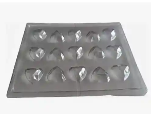Molde acetato corazón prisma mini x 15 cavidades. Ideal para chocolatería. Medidas del molde 23.5 x 19.5 Cms. Cavidad corazón 3.5 x 3.5 Cms.