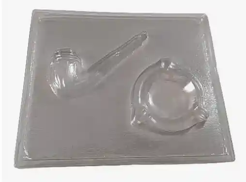 Molde acetato. Figura pipa y cenicero. Ideal para chocolatería. Medida de la pipa 14 x 6 Cms. Cenicero 8 Cms de diámetro.