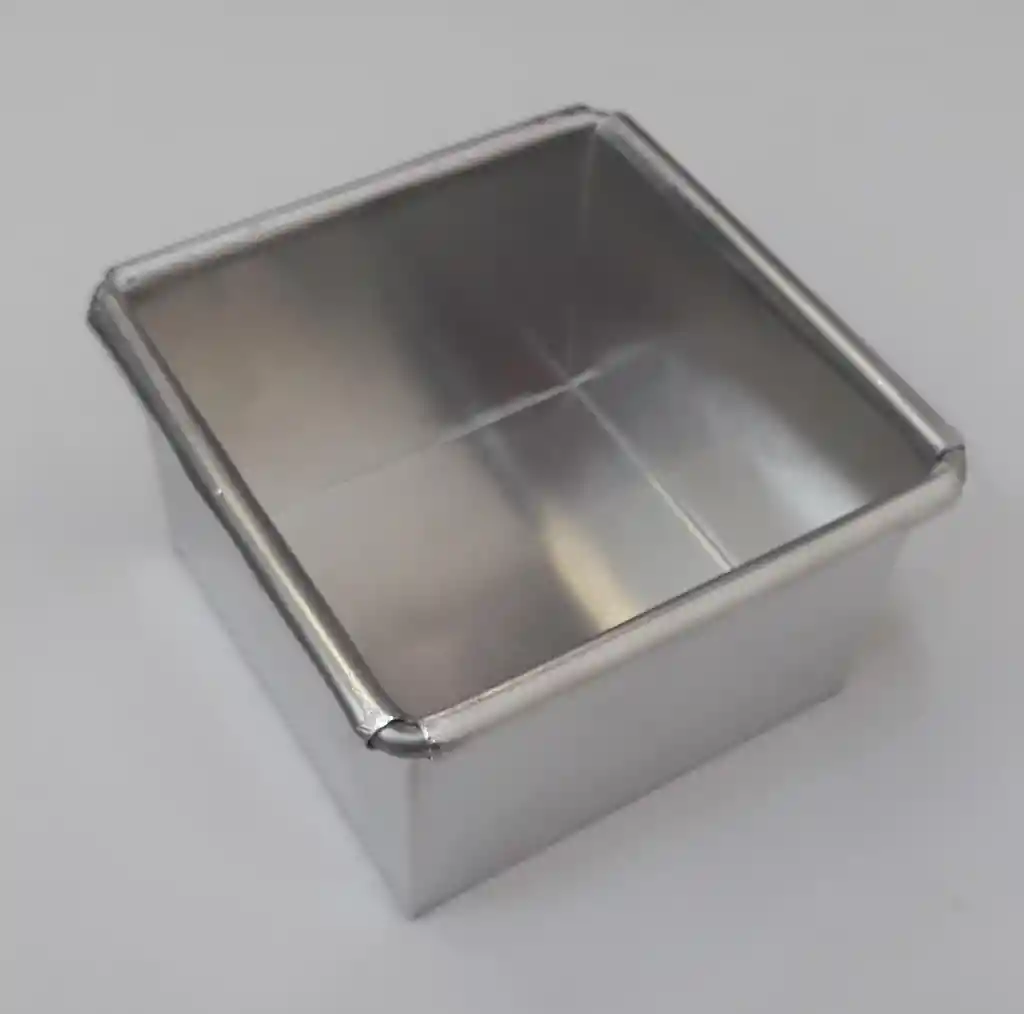 Molde en aluminio cuadrado ideal para mini tortas y demás preparaciones en repostería y pastelería. Dimensiones 10x10x7cm