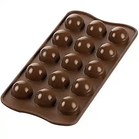 Molde de silicona para repostería, fácil de desmoldar. ideal para chocolate, fondant, gelatinas o caramelo. 15 media esferas de 2,6cm de diámetro.